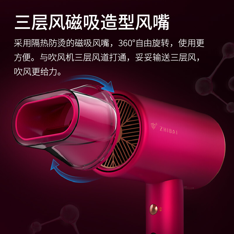 直白HL510三层水润水离子护发吹风机家用大风力静音吹风筒不伤发电吹风【ABS/红色】 |