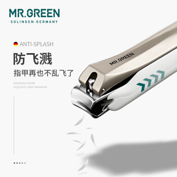 MR.GREEN进口不锈钢指甲刀防飞溅指甲剪家用单个指甲钳修甲美甲工具礼盒装 平口中号 Mr-1116plus |