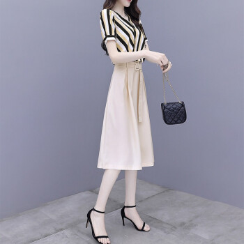 莱倪晟纳短袖雪纺连衣裙女装新品2020年夏季新款韩版中长款印花宽松显瘦时尚性感减龄两件套装沙滩裙子 上衣+裙子 请拍正确尺码 |