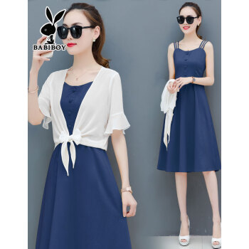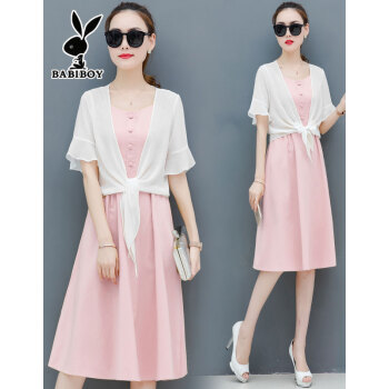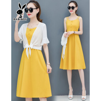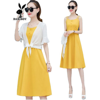 BABIBOY 雪纺连衣裙女两件套短套装裙2020夏季新款韩版小个子显高洋气质减龄雪纺女士吊带裙子 黄色 M |