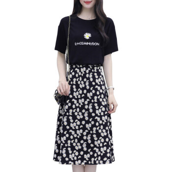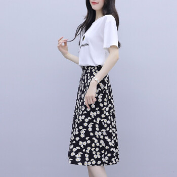 茵艾曼女装连衣裙女修身显瘦夏季2020新款小雏菊流行套装裙子泫雅风碎花两件套装小个子 A268白色 L《107-117斤》 |