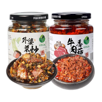 [田野故事]湖南特产外婆菜炒腊肉农家开胃咸菜拌饭酱玻璃瓶装加肉香辣湘西下饭菜210g 外婆菜炒腊肉210g/瓶+香菇牛肉酱258g/瓶 |