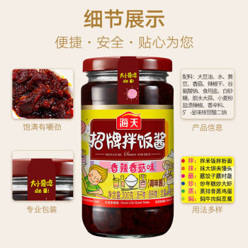 海天 招牌拌饭酱 香辣香菇味辣椒酱料 300g 中华老字号 |