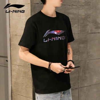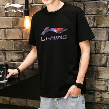 李宁(LI-NING)短袖t恤男2020夏季速干圆领T恤舒适透气半袖棉打底衫运动服 基础黑-纯棉(星空) L(175) |