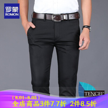 罗蒙冰丝休闲裤男士商务休闲直筒宽松夏季薄款天丝弹力青年西裤修身西服裤子正装免烫 黑色 32 2尺5腰围 |