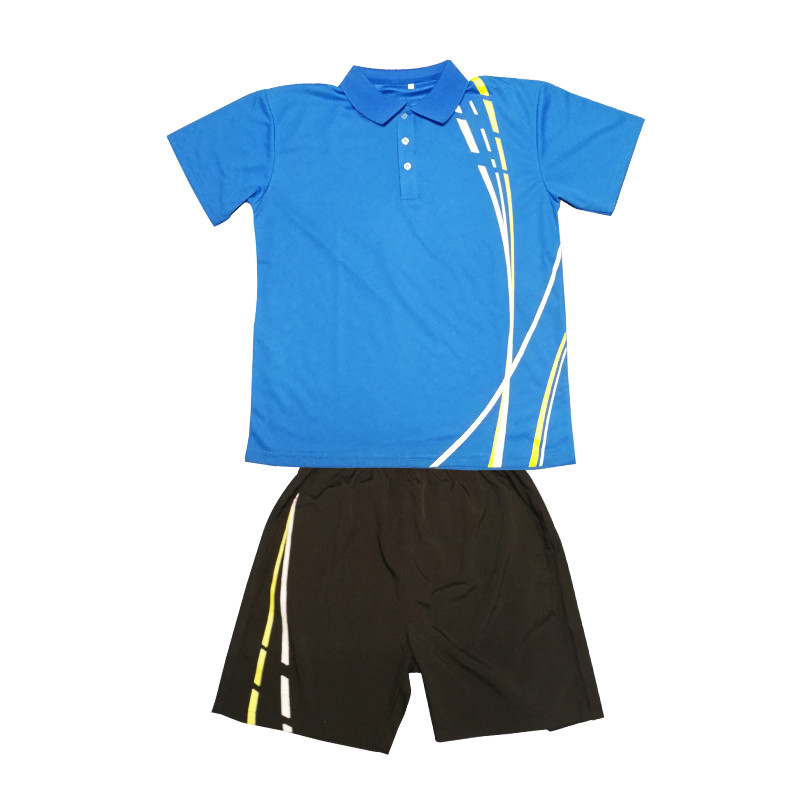 休闲短袖短裤套装L码 线条蓝 |