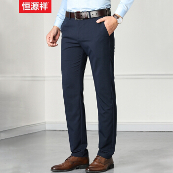 恒源祥 西裤男2020春夏新款中青年商务修身男士裤子弹力直筒长裤休闲裤男 H0712010170 藏青色 32 |