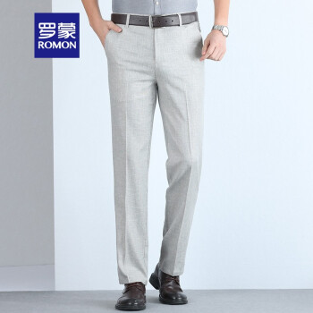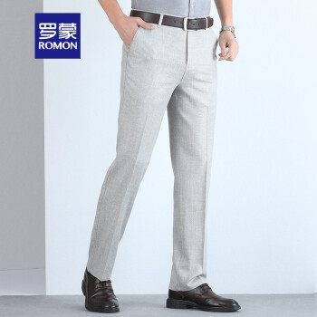 罗蒙(ROMON)中老年男装裤子2020夏季新款亚麻休闲西裤男士商务长裤子男装棉麻宽松直筒爸爸装 浅灰 33 |
