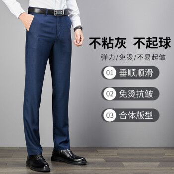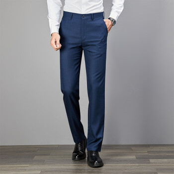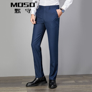 默守轻奢品牌男装西裤男商务正装宽松夏季中年免烫大码经典裤子男新款男装西裤礼物送老公 灰蓝 84S |