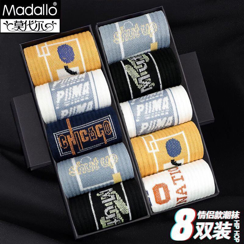 莫代尔8双装袜子男潮流长筒袜黑色 |