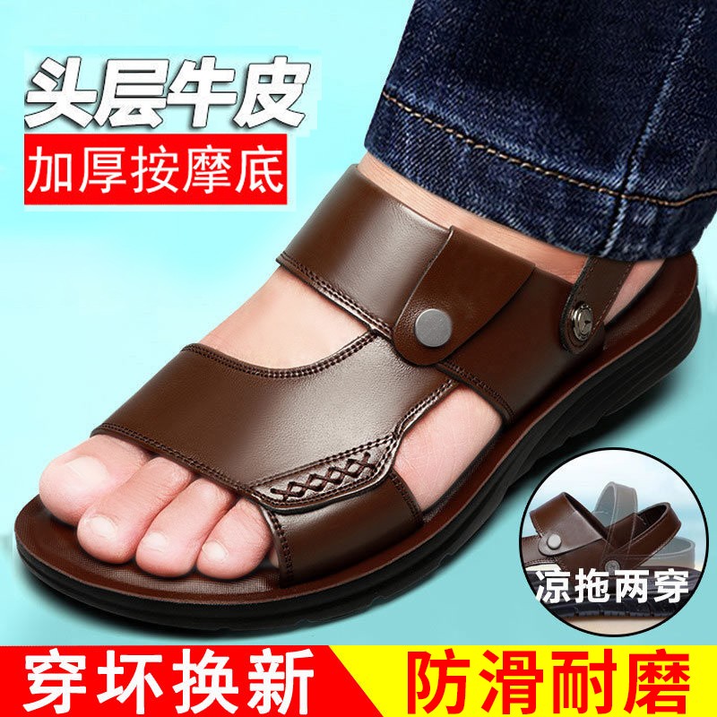 香珀 凉鞋男真皮夏季新品男士沙滩鞋头层牛皮凉拖 |