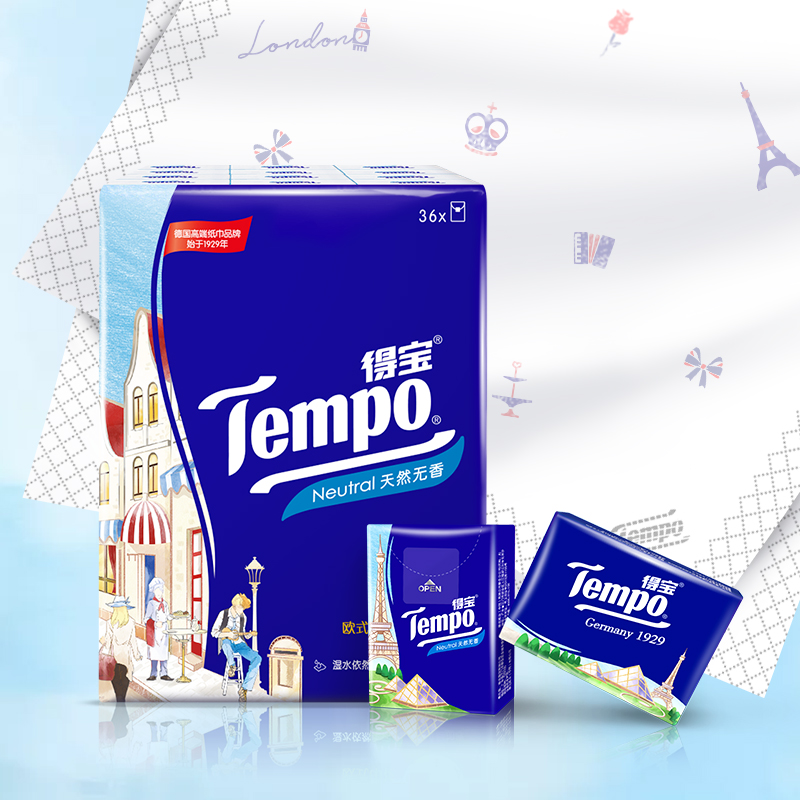 得宝(Tempo) 手帕纸 迷你欧式印花36包*4层加厚 |