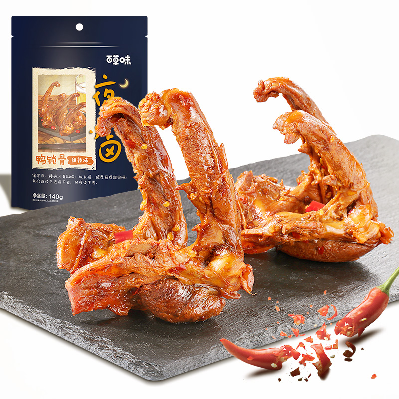 百草味 卤味鸭架子 熟食休闲办公室零食小吃 肉干肉脯武汉风味特产 甜辣味鸭锁骨140g/袋 |