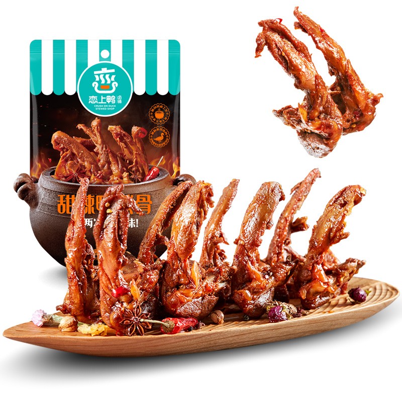 恋上鸭 即食鸭锁骨 休闲零食鸭肉熟食即食卤味特产小包装 甜辣鸭锁骨112g/袋 |