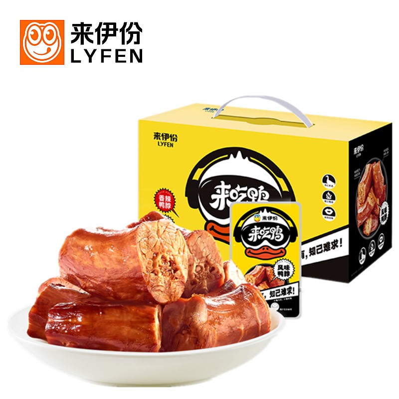 来伊份 风味香辣混合鸭脖 卤味鸭脖零食小吃休闲食品488g/袋 |