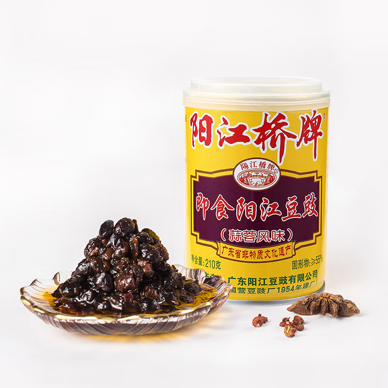 阳江桥牌 豆豉酱 即食豆豉 下饭拌面拌饭调味 蒜蓉风味油豆豉 罐装210g |