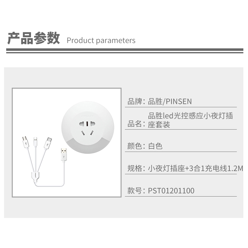 led光控感应小夜灯插座套装【ABS/白色】 |