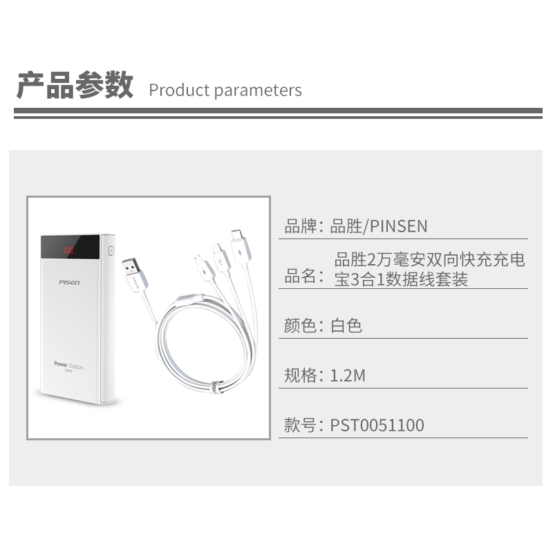 2万毫安快充充电宝3合1线套装【ABS/白色】 |