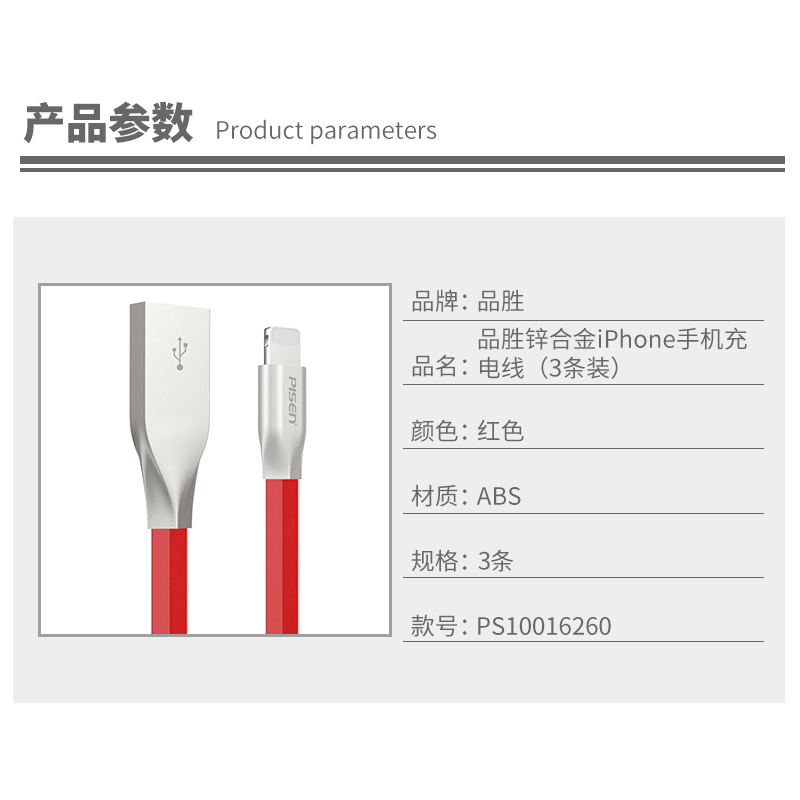 锌合金iPhone手机充电线(3条)【ABS/红色】 |