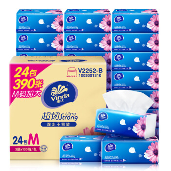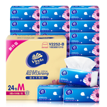 维达(Vinda)抽纸 超韧3层130抽纸巾*24包(认准真M码) 整箱销售 可湿水面巾纸面巾纸 小包纸巾 |