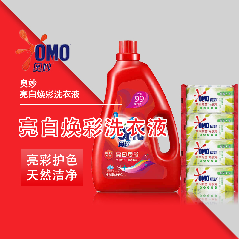 奥妙18亮白焕彩洗衣液4斤+奥妙茶树内衣皂组合 |