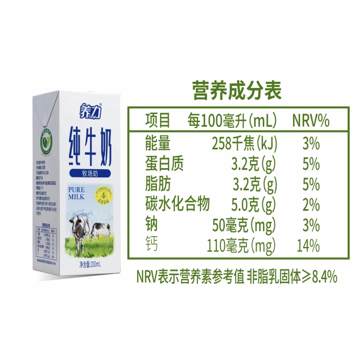 养力牧场纯牛奶200ml(奶香浓郁自带甘甜) |