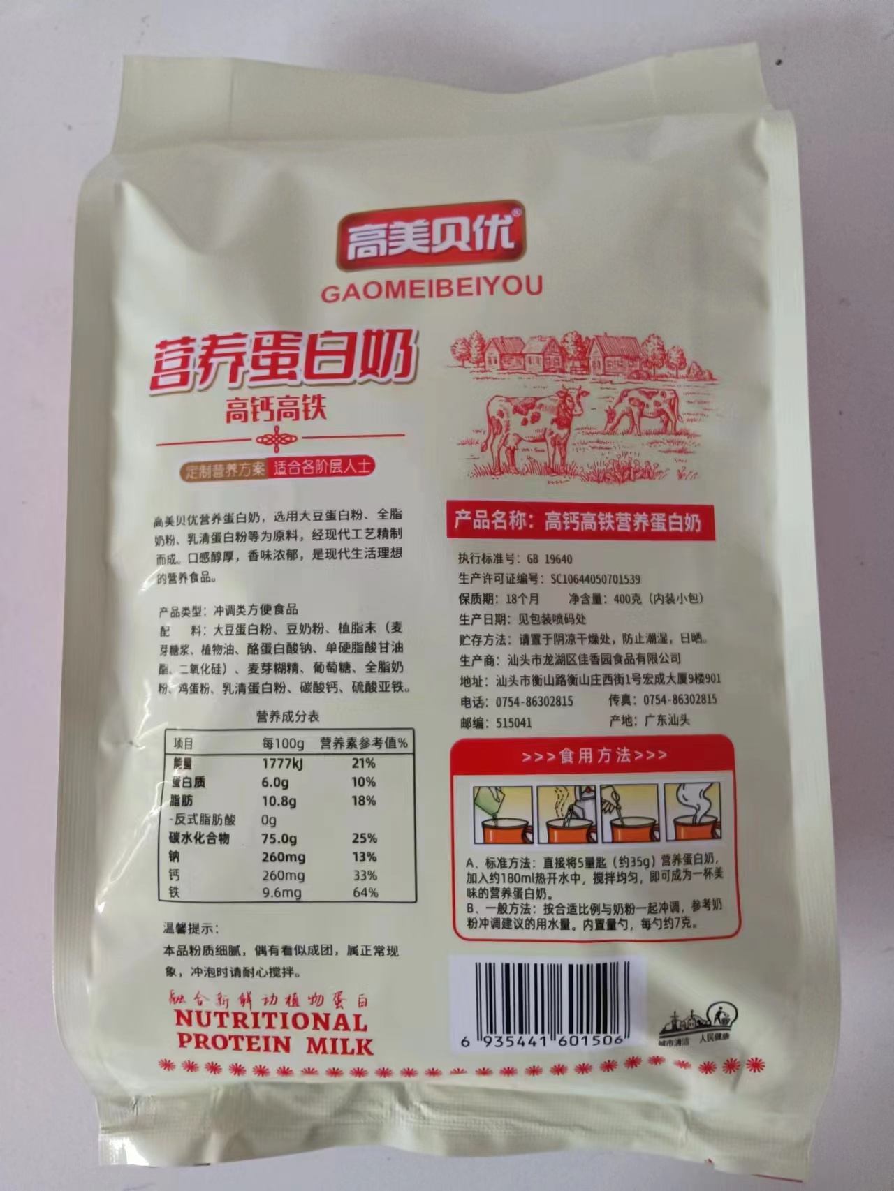 高钙高铁营养蛋白豆奶粉400g(内含独立小包) |
