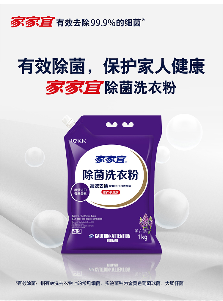 家家宜除菌去渍洗衣粉1kg(带拧盖 薰衣草) |