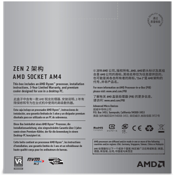 AMD 锐龙5 3600 处理器 (r5)7nm 6核12线程 3.6GHz 65W AM4接口 盒装CPU |