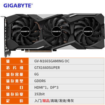 技嘉(GIGABYTE)GeForce GTX 1660 SUPER GAMING OC 6G 192bit GDDR6 吃鸡电竞游戏显卡 |