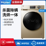 Haier/海尔 G100108HB12G 滚筒洗衣机烘洗干一体机空气洗家用变频除螨10公斤大容量筒自洁【渗锌钢板/金色】