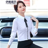 伊雅露莎职业装大码棉质衬衫女长袖20秋季新款时尚领结衬衣面试通勤工作服2157 单件白色衬衫 L