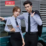 伊娅莎职业男女同款条纹长袖衬衫销售售楼部上班工作服logo定制修身白领寸衣男商务正装打底衬衣套装 291单件白底蓝条衬衫【女】 XL
