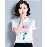 婪澈短袖T恤女2020女装夏季新款韩版时尚气质圆领印花衣服t恤女显瘦拼接上衣女 白色 请拍正确尺码