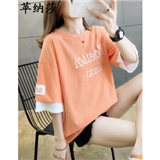 苹纳莎 短袖T恤女2020夏季新款时尚韩版宽松学生百搭时尚上衣打底潮 桔色 L (建议100斤-115斤)