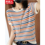 南极人 短袖t恤女装夏季2020年新款气质韩版时尚条纹撞色拼接针织小衫上衣女 条纹 M