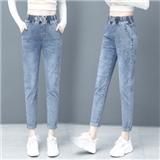 吧吆吆休闲牛仔裤女2020夏季新款高腰女装宽松直筒哈伦裤百搭薄款天丝九分裤女裤小脚裤子潮 浅蓝夏款 28