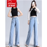 北极绒牛仔裤女2020春秋季新品韩版潮流阔腿裤女高腰垂感牛仔裤女休闲直筒宽松拖地裤女6763 蓝色 请拍正确尺码