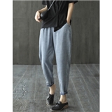 龙芝美 天丝牛仔裤女2020夏季新款复古文艺松紧腰宽松哈伦九分裤女 蓝色 请拍正确尺码