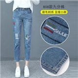 卓芭莎九分牛仔裤女2020夏季新款薄款宽松休闲直筒裤子女破洞小脚女裤潮 蓝色-九分裤 M