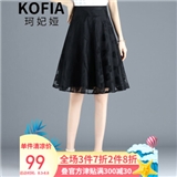 珂妃娅 半身短裙女a字裙2020夏薄款裙子黑色欧根纱中长百褶蓬蓬网纱裙 9936 黑色 L/28码-2尺1