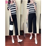 竽妤休闲裤女休闲套装女2020夏季阔腿裤套装女夏装时尚套装新款韩版休闲女夏装两件套洋气套装 黑色条纹 请拍对应尺码