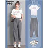 阔恋冰丝休闲裤女夏季薄款束脚西装裤2020新品直筒宽松高腰哈伦裤子百搭显瘦九分裤韩版松紧腰萝卜女裤 灰色 M