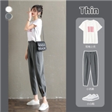朵沐缦 束脚休闲裤女高腰显瘦2020夏季薄款哈伦裤时尚韩版百搭西装裤直筒宽松九分萝卜裤潮 1680-1薄款 灰色 L