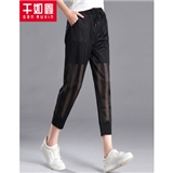 干如鑫休闲裤女运动裤女2020夏季新款时尚网纱哈伦裤子女学生显瘦七分裤宽松运动百搭高腰大码灯笼裤女潮 图片色(黑色) M(90-100斤)
