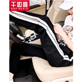 干如鑫休闲裤女运动裤女2020夏季新款时尚网纱哈伦裤子女学生显瘦七分裤宽松运动百搭高腰大码灯笼裤女潮 图片色(黑色) M(90-100斤)