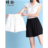 梓龄 短裤女运动裤女2020新款夏季加肥加大码冰丝棉麻短裤女百搭休闲阔腿外穿运动裤薄款三分裤 黑色 请拍对应尺码