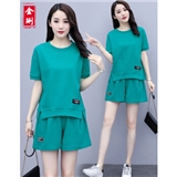 金琍JL短裤女休闲套装女2020夏季新款圆领短袖上衣短裤套装学生宽松晨练跑步大码女装减龄显瘦两件套 海蓝色 L【建议90-110斤】