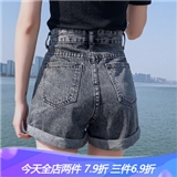 沫澜仟衣高腰牛仔短裤女2020夏季新款韩版宽松显瘦阔腿裤子女休闲百搭外穿a字热裤优质面料 黑灰 XL