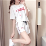 仙器 短裤女休闲套装女短裤运动服夏季新款2020网红时尚胖MM大码短袖T恤两件套潮 白色 M